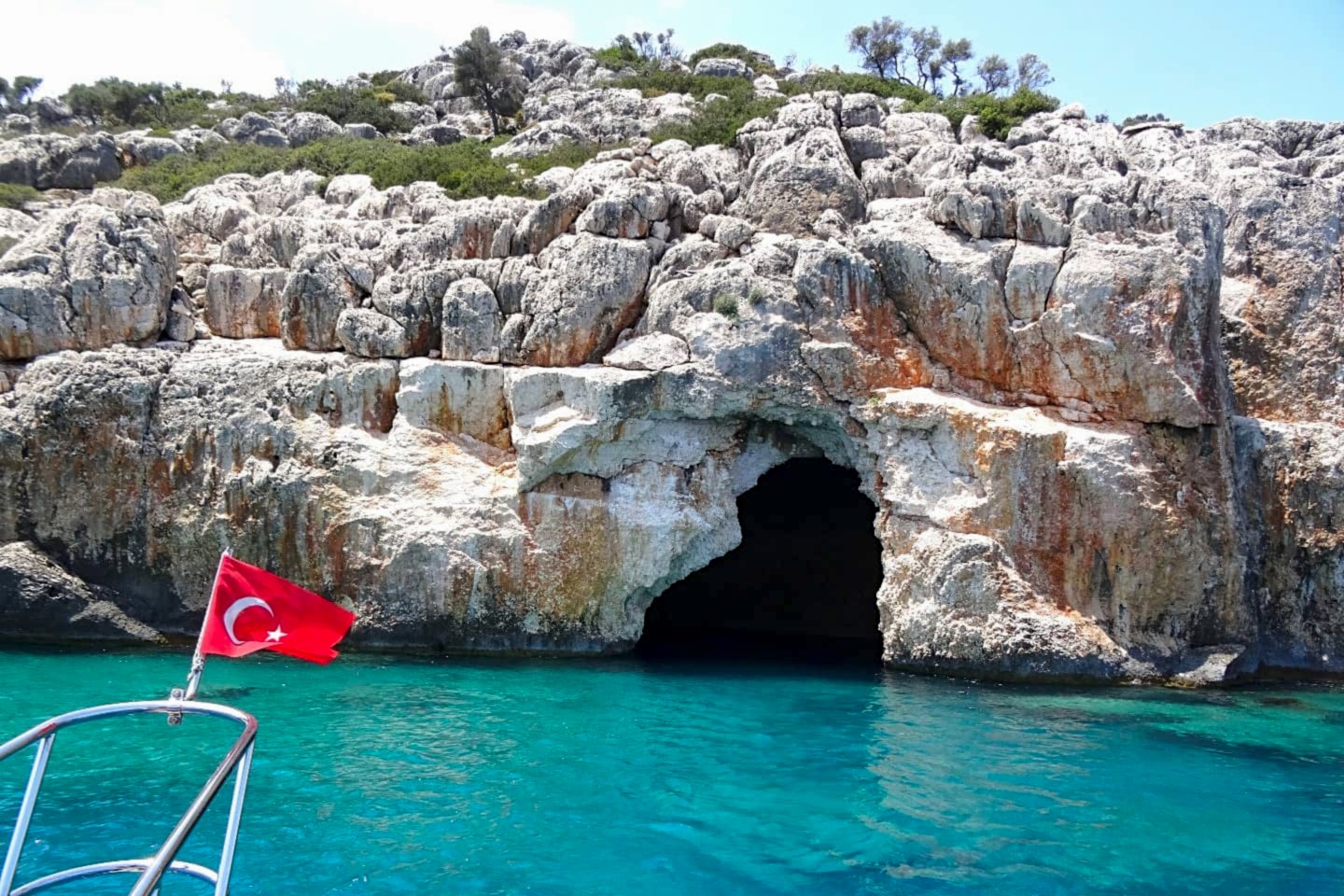 Kekova Tekne Turu’nun son durağı, Aşırlı Adası’nda bulunan Korsan Mağarası. Efsanelere göre eski korsanların saklanmak için kullandığı bu mağara, bugün doğayla iç içe yüzmek ve keşfetmek isteyenler için harika bir nokta.